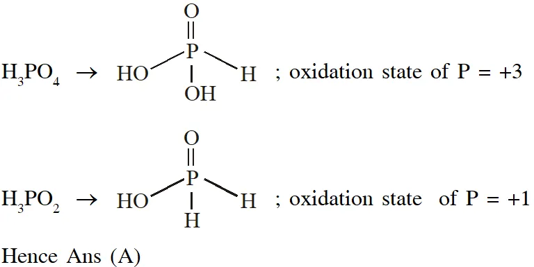 Q. The order of the oxidation state of the phosphorus atom in $\mathrm{H}_{3} \mathrm{PO}_{2}, \mathrm{H}_{3} \mathrm{PO}_{4}, \mathrm{H}_{3} \mathrm{PO}_{3}$ and $\mathrm{H}_{4} \mathrm{P}_{2} \mathrm{O}_{6}$ is