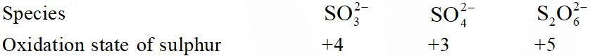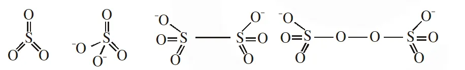Q. The number of S–S bonds in $\mathrm{SO}_{3}, \mathrm{S}_{2} \mathrm{O}_{3}^{2-}, \mathrm{S}_{2} \mathrm{O}_{6}^{2-}$ and $\mathrm{S}_{2} \mathrm{O}_{8}^{2-}$ respectively are :-
