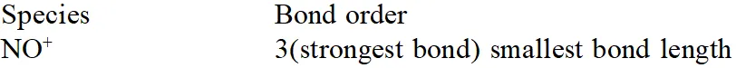 Q. Using MO theory predict which of the following species has the shortest bond length ?