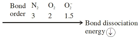 Q. The correct order of bond dissociation energy among $\mathrm{N}_{2}, \mathrm{O}_{2}, \mathrm{o}_{2}^{-}$ is shown in which of the following arrangements?