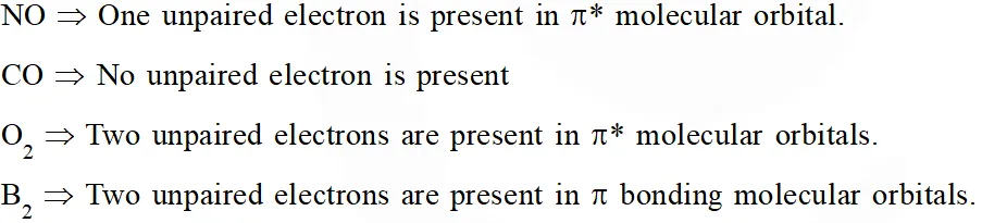 NO has unpaired e $^{-} \therefore$ paramagnetic is nature