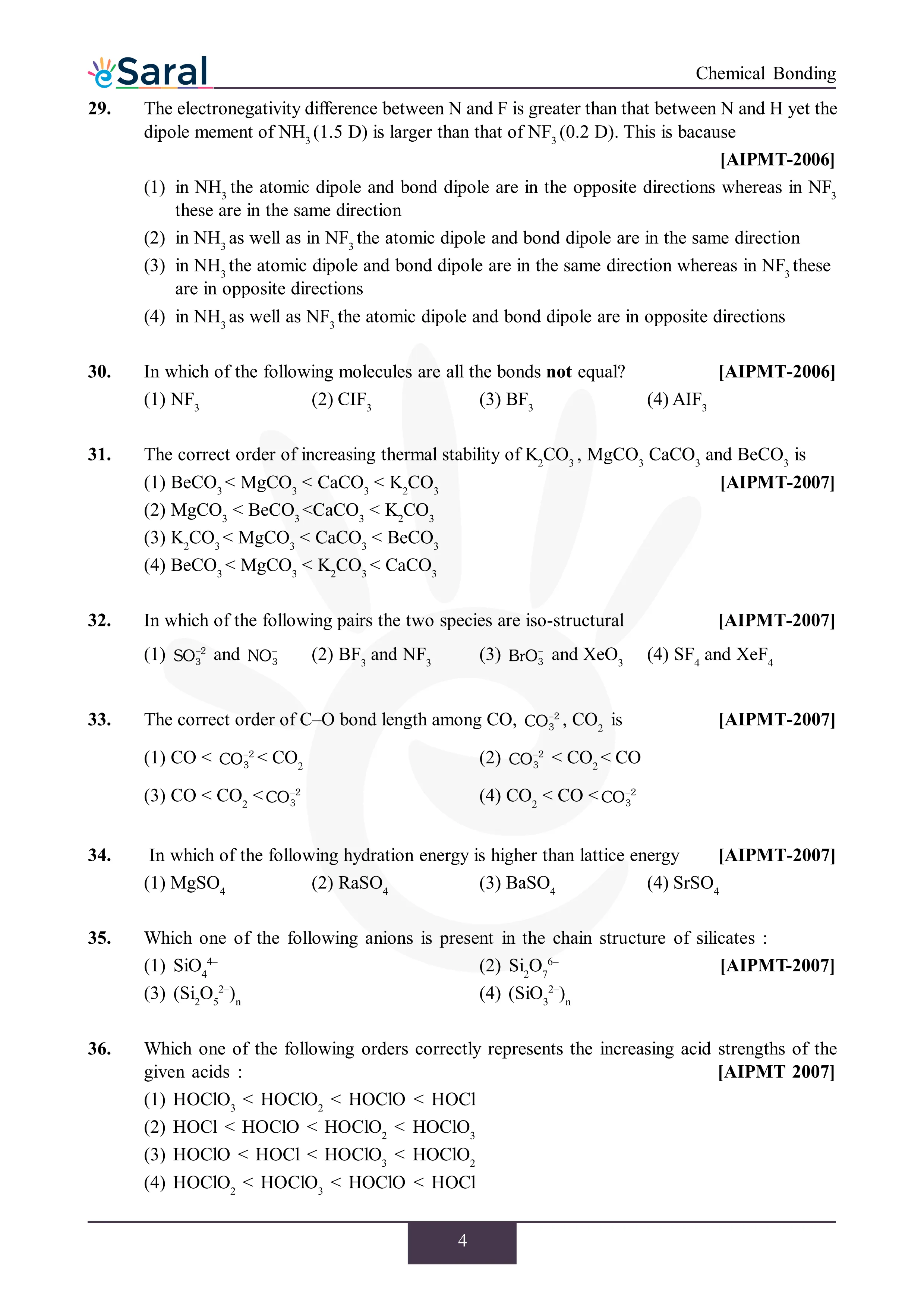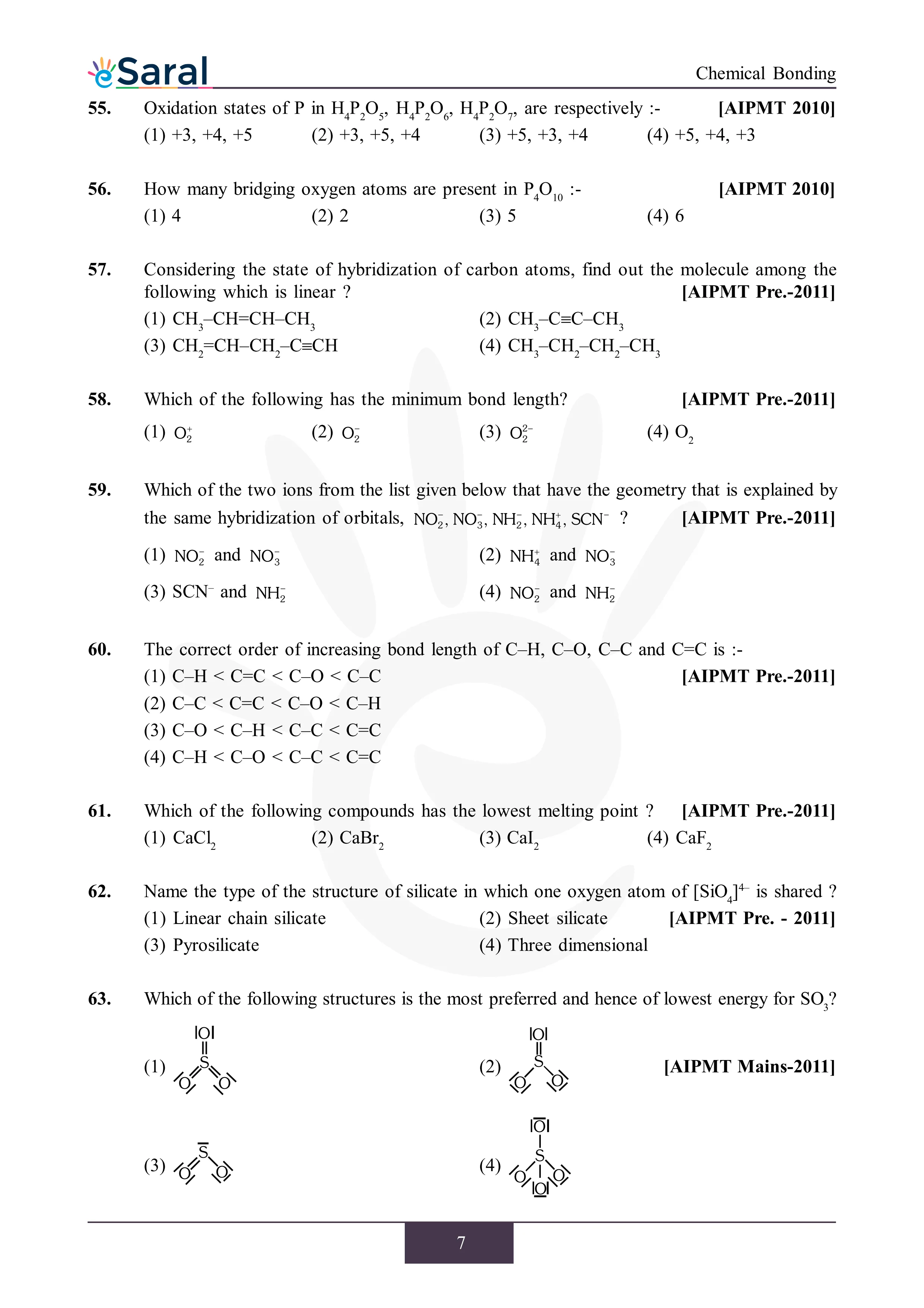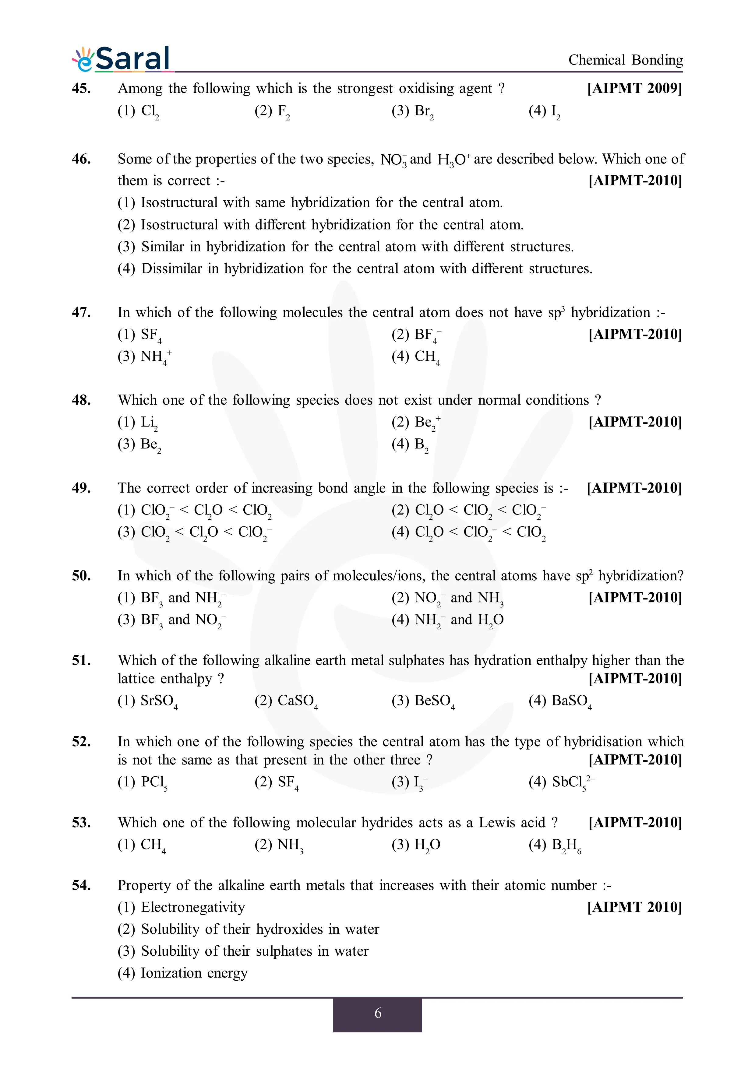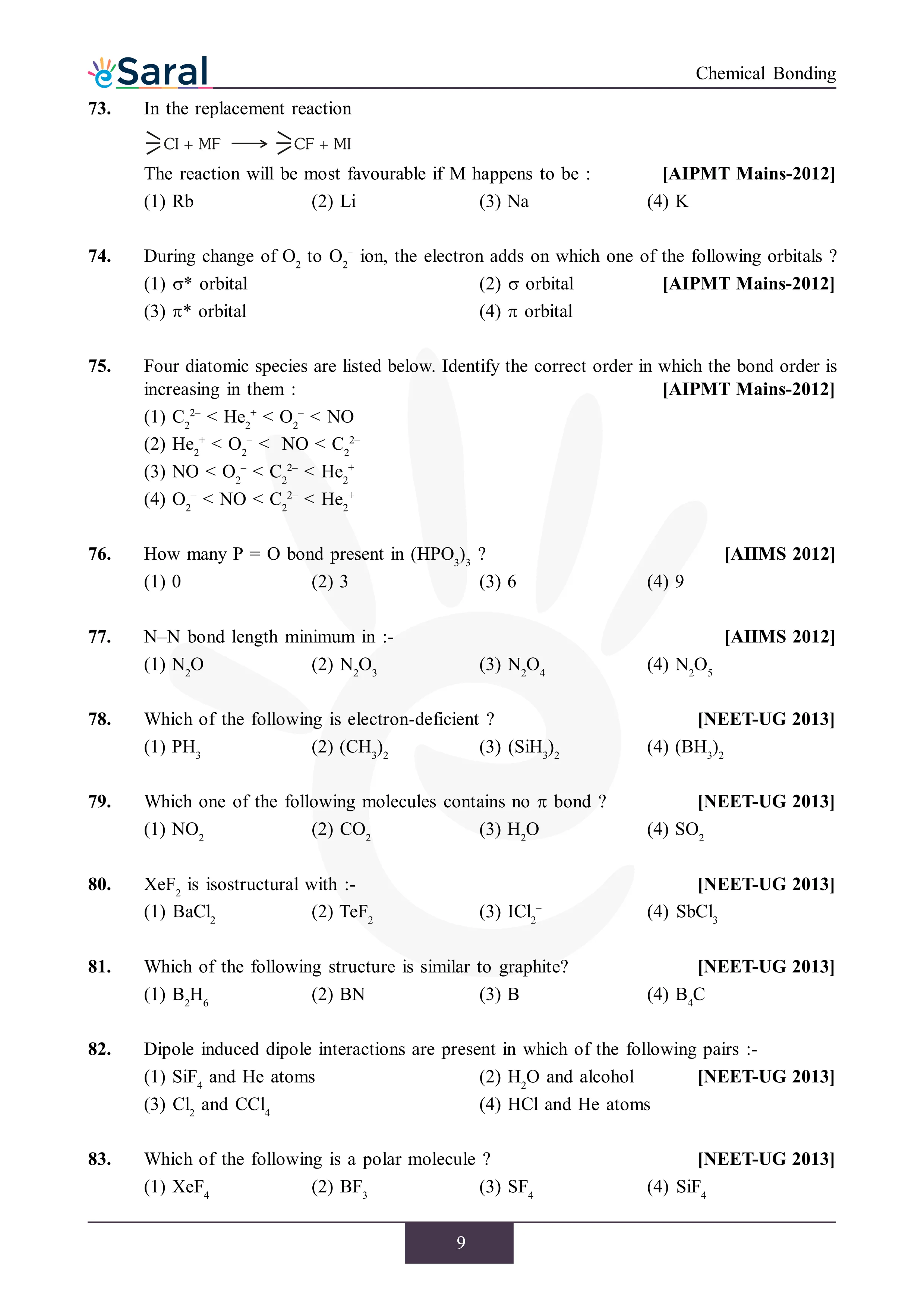 JEE Mains & AdvancedHere you will get Complete Chemical Bonding NEET Previous Year Questions with complete and detailed solutions.