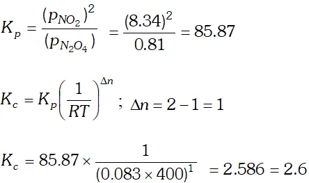 Q. What is $K_{c}$ for the following equilibrium, when the equilibrium concentration of each substance is : $\left[\mathrm{SO}_{2}\right]=0.60 \mathrm{M},\left[\mathrm{O}_{2}\right]=0.82 \mathrm{M}$ and $\left[\mathrm{SO}_{3}\right]=1.90 \mathrm{M}$ $2 S O_{2}(g)+O_{2}(g) \rightleftharpoons 2 \mathrm{SO}_{3}(\mathrm{g})$