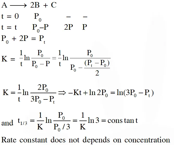total pressure at the beginning (t = 0) and at time t are P0 and Pt, respectively. Initially, only A
