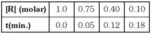 ButQ. The concentration of R in the reaction $\mathrm{R} \rightarrow \mathrm{P}$ was measured as a function of time and the following data is obtained :