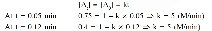 Alternative solution : By hit and trial method, assuming the reaction is of zero order, putting given data in integrated expression for zero order.