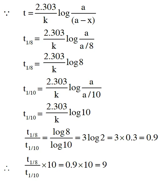 \frac{\left[\mathrm{t}_{1 / 8}\right]}{\mathrm{t}_{1 / 10}} \times 10 ?\left(\text { take } \log _{10} 2=0.3\right)