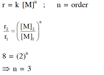 \mathrm{M} \rightarrow \mathrm{N}$$, the rate of disappearance of M increases by a factor of 8 upon doubling the concentration of M. The order of the reaction with respect to M is