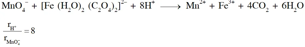 \left[\mathrm{H}^{+}\right]$$ to the rate of change of [MnO4–] is.