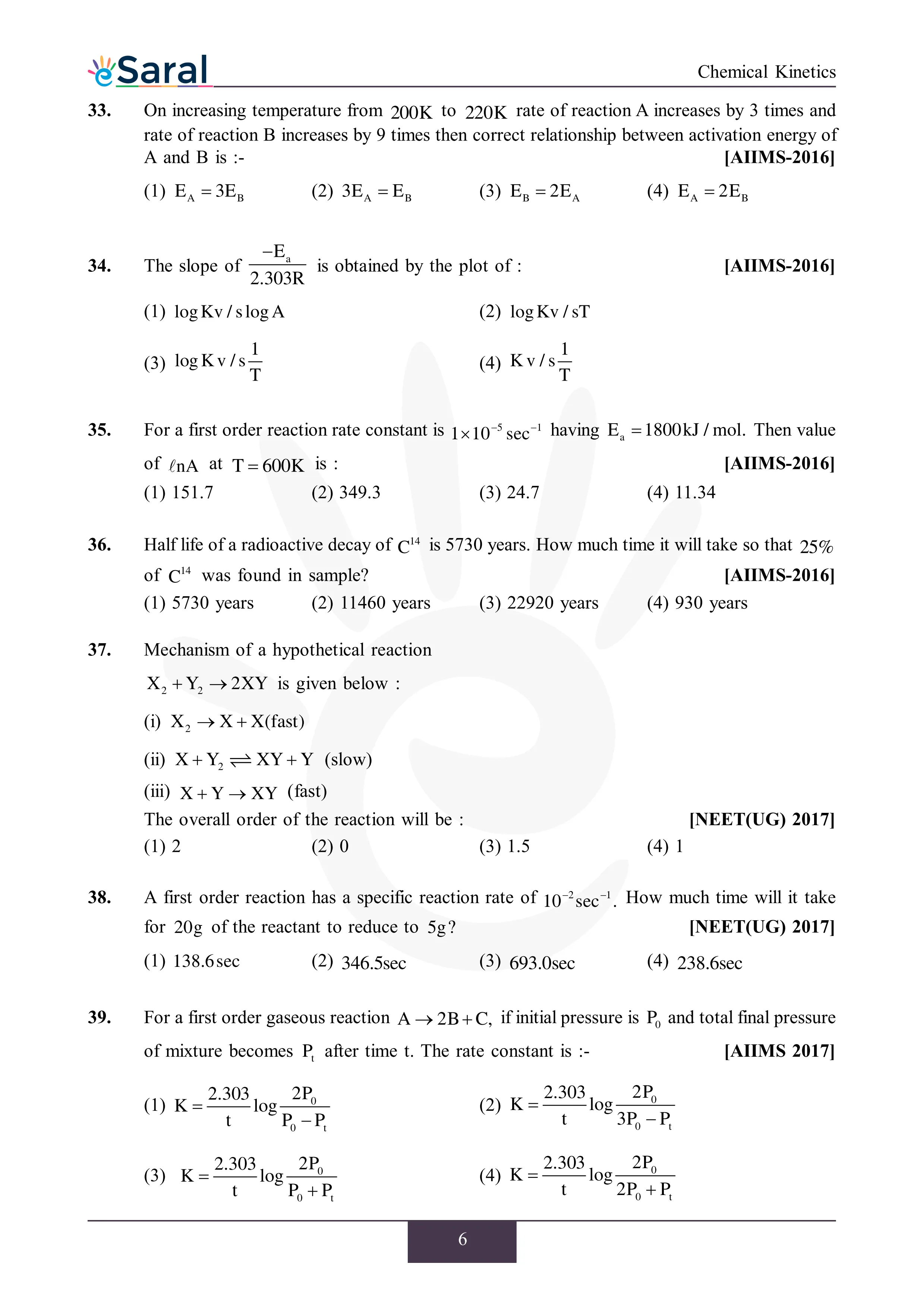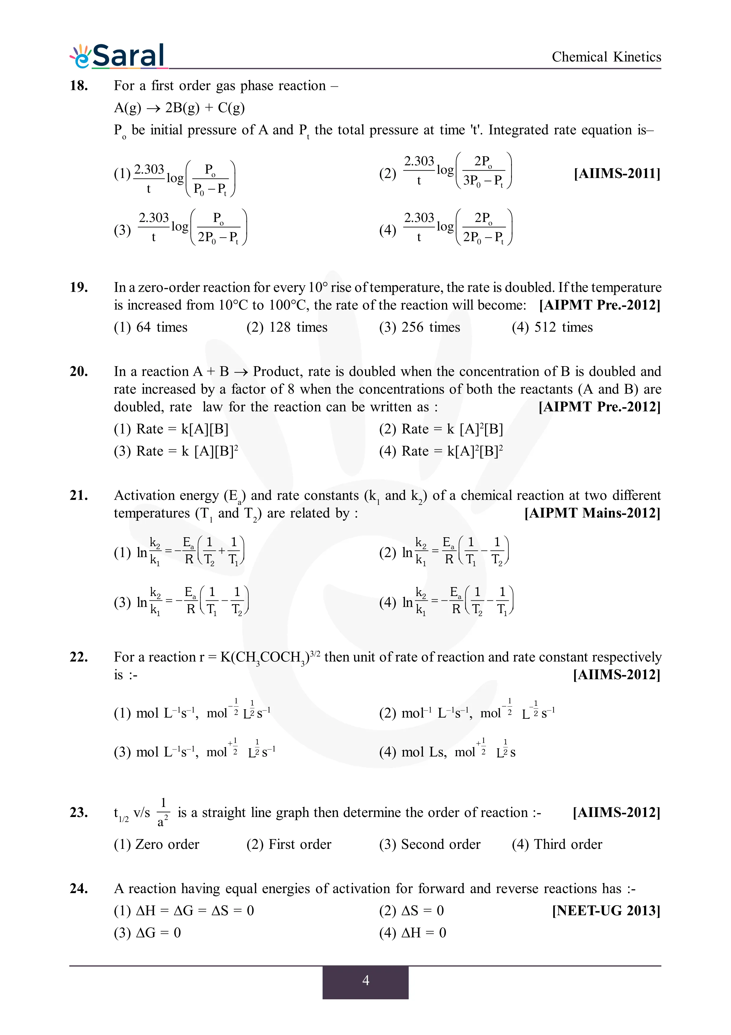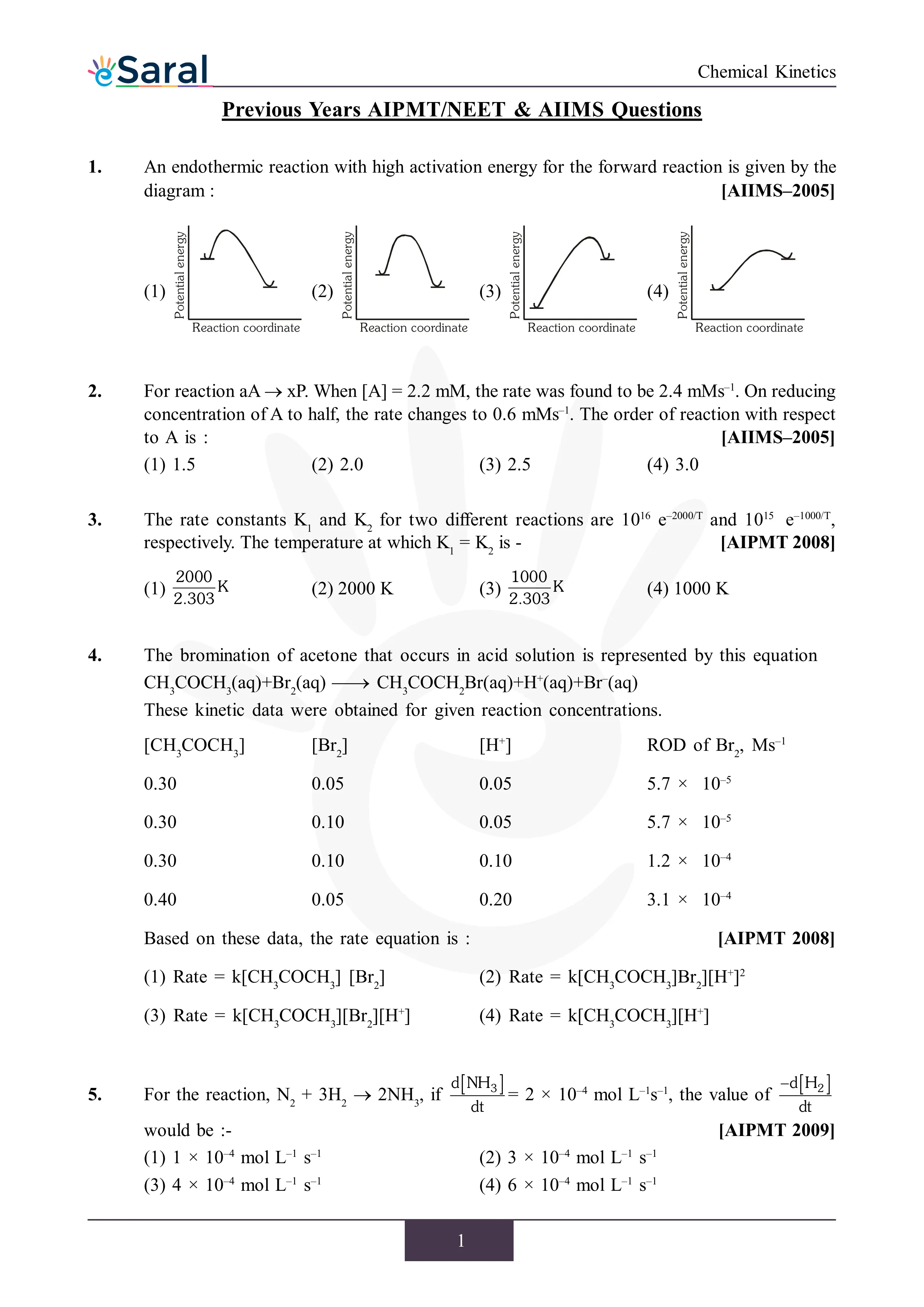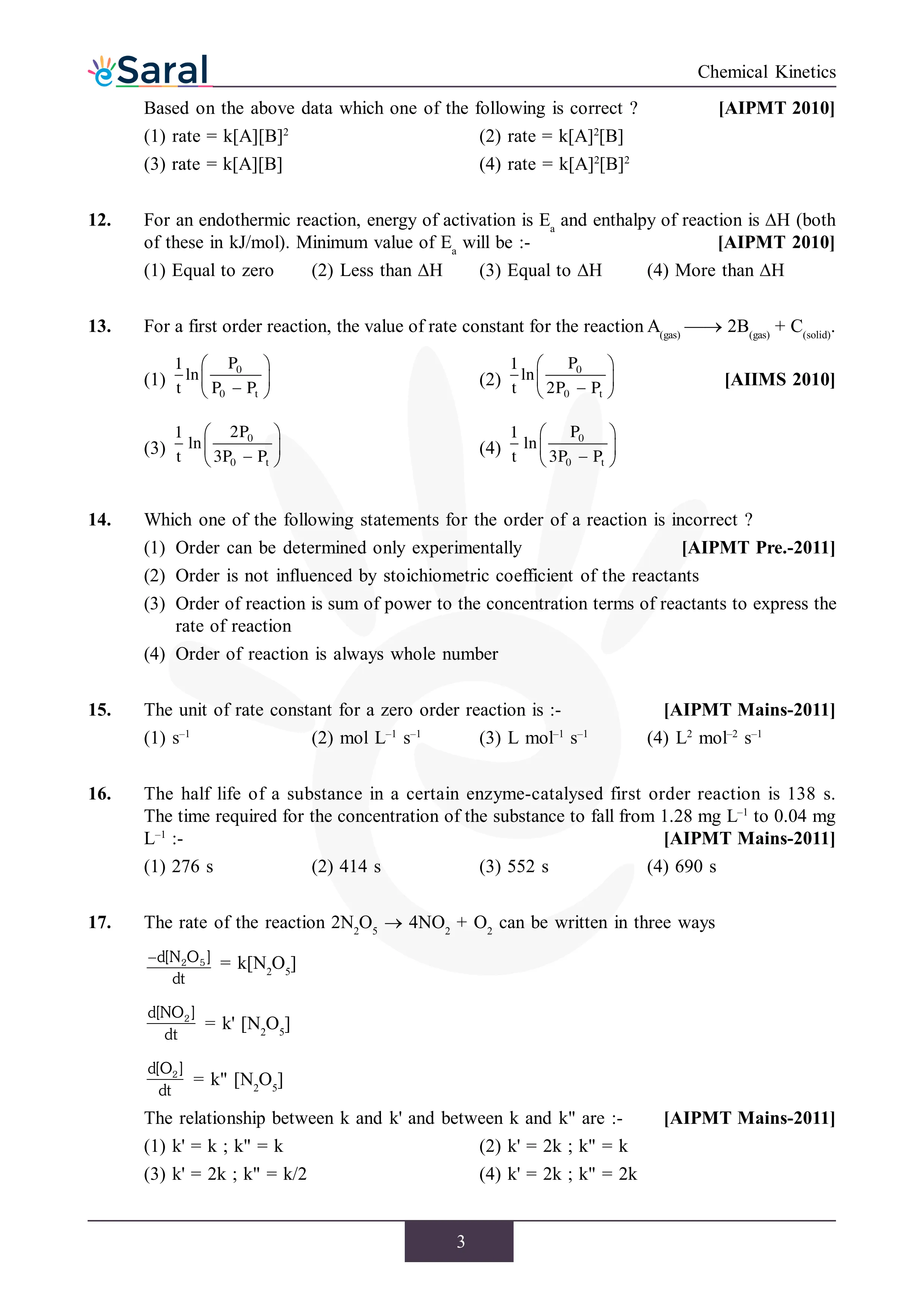Here you will get Complete Chemical Kinetics NEET Previous Year Questions with complete and detailed solutions.