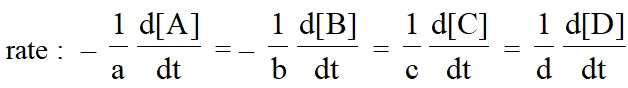The positive sign shows that concentrations of C and D increases with time and the negative sign indicating that concentrations of A and B decrease with time.Thus the rate of general reaction.