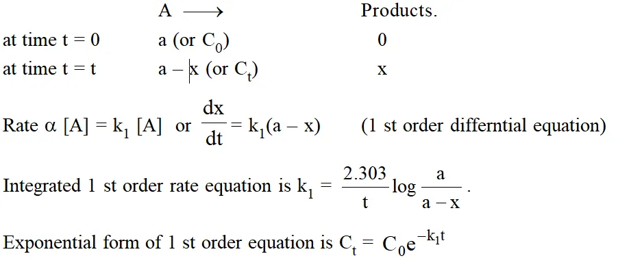 a reaction is said to be of first order if its rate is proportinal to the concentration of one reactant only.