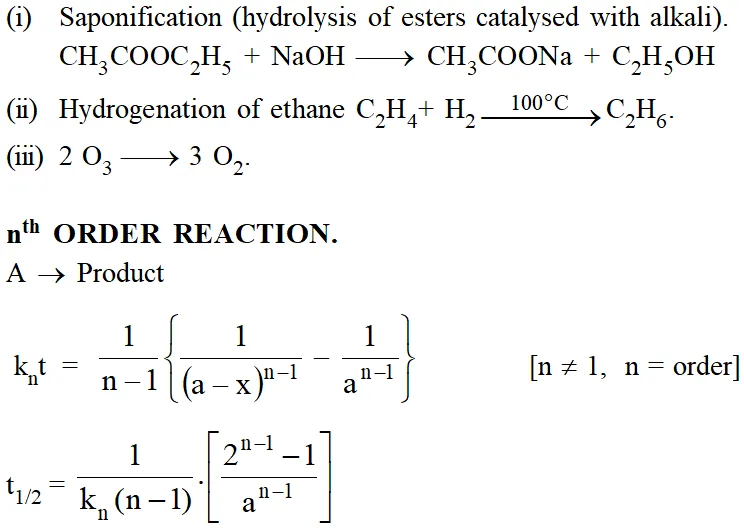 3.Half Life Method : The half life of different order of reactions is given by $\mathrm{a}_{\mathrm{n}}=\left(\frac{1}{2}\right)^{\mathrm{n}} \mathrm{a}_{0}$
