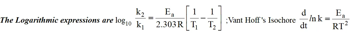 Temperature coefficient $=\frac{\mathrm{k}_{\mathrm{t}+10}}{\mathrm{k}_{\mathrm{t}}}$