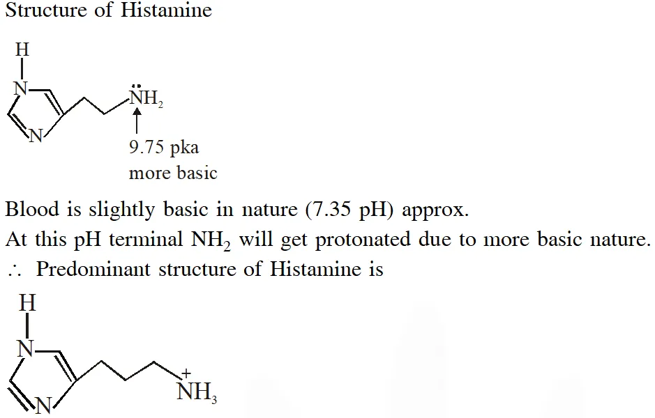 Q. The predominant form of histamine present in human blood is $\left(\mathrm{pK}_{\mathrm{a}}\right.$, Histidine = 6.0)