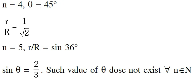 Q. For a regular polygon, let r and R be the radii of the inscribed and the circumscribed circles. A false statement among the following is :-