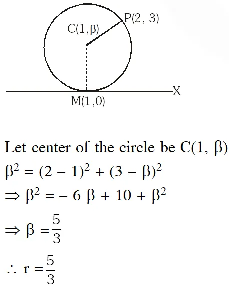 Q. The length of the diameter of the circle which touches the x-axis at the point (1, 0) and passes through the point (2, 3) is :
