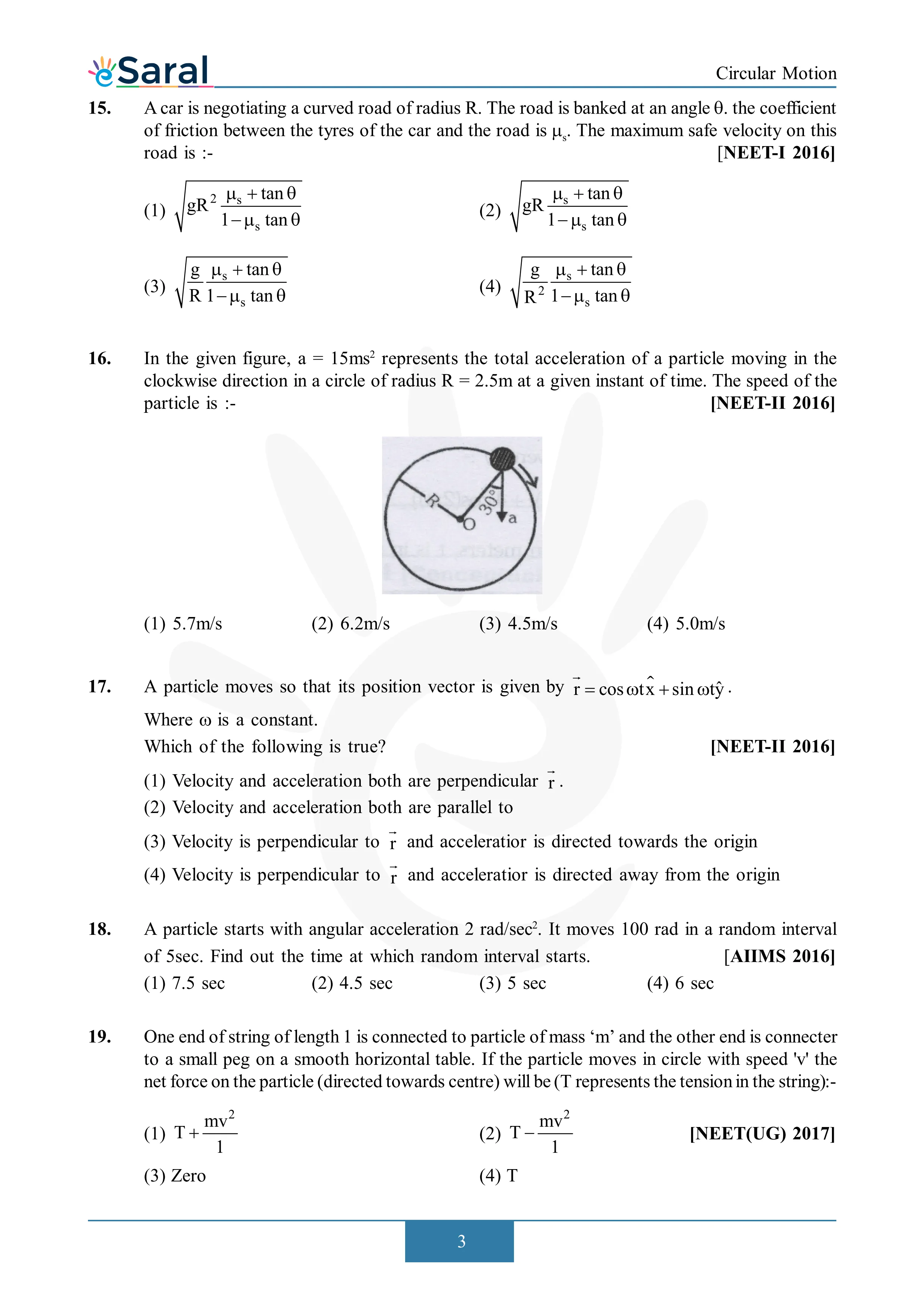 Here you will get Complete Circular Motion NEET Previous Year Questions with complete and detailed solutions.