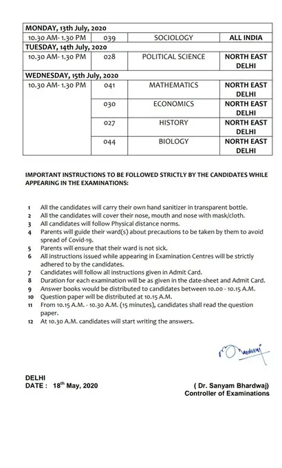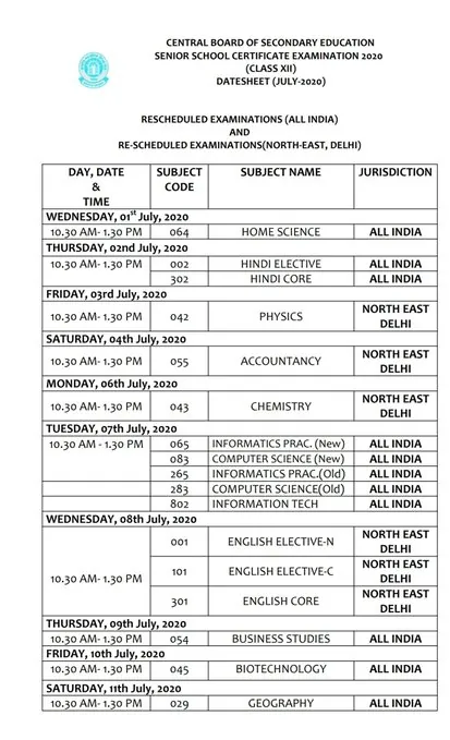 CBSE Date Sheet 2020 for the pending CBSE 12th Exam 2020 has been released by HRD Minister on his twitter handle. Check the exam dates below. The complete list of papers and the new dates are provided below.