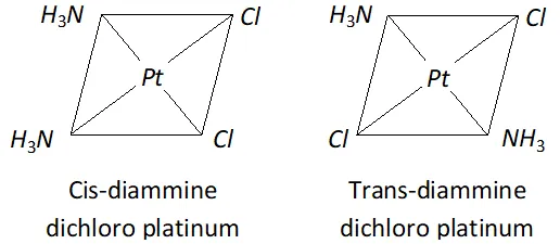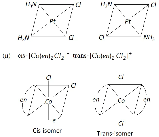 Ans. Explain geometrical isomerism with reference to square planar complexes giving one example. How is tetrahedral complexes with simple ligands do not exhibit geometrical isomerism?