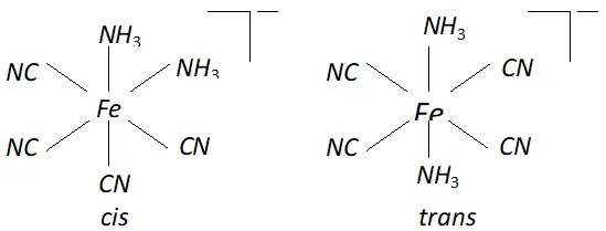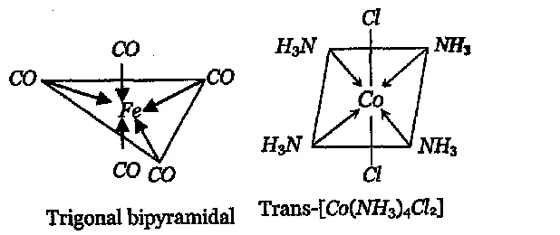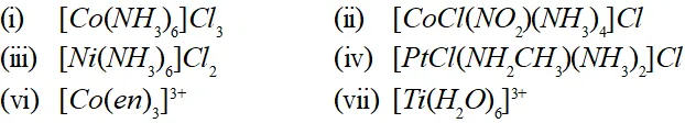 (i) $\mathrm{Fe}(\mathrm{CO})_{5}$ (ii) trans- $\left[\mathrm{Co}\left(\mathrm{NH}_{3}\right)_{4} \mathrm{Cl}_{2}\right]^{+}$