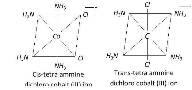 $$ \left[\mathrm{Co}\left(\mathrm{NH}_{4}\right)_{4} \mathrm{Cl}_{2}\right]^{+} $$