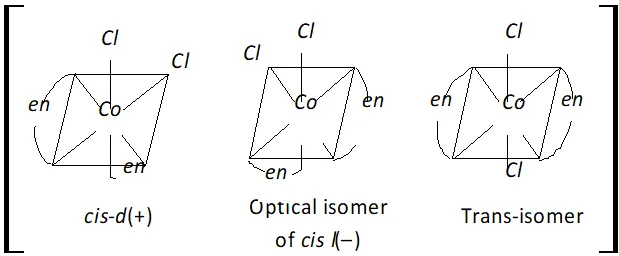 (b) Optical isomerism: Optical isomers are mirror images that cannot be super imposed on one another. There are called as enantiomers. The two forms are called dextro (d) and laevo $(l)$ depending upon direction they rotate the plane of polarised light in polarimeter.