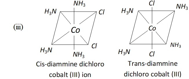 Q. Write the structures of a pair of complexes showing geometrical isomerism.