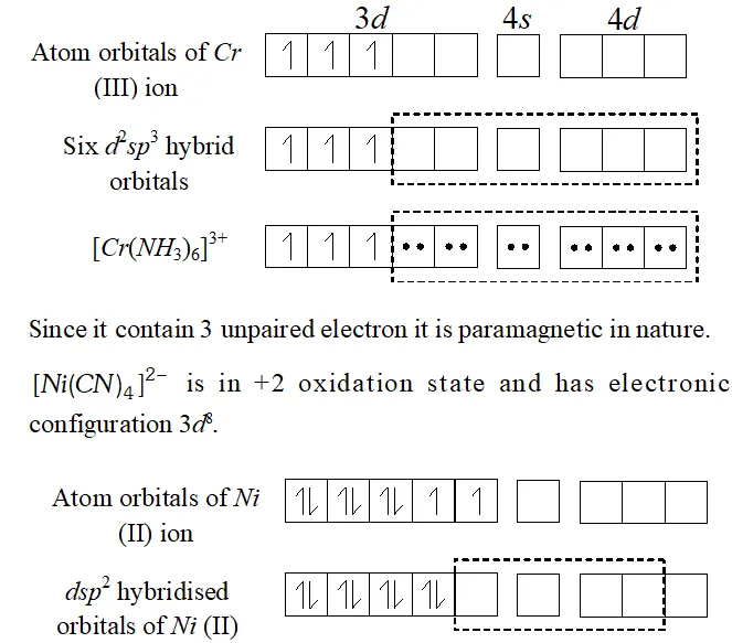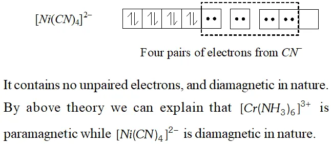 Q. $\left[C r\left(N H_{3}\right)_{6}\right]^{3+}$ is paramagnetic while $\left[N i(C N)_{4}\right]^{2-}$ is diamagnetic. Explain why?