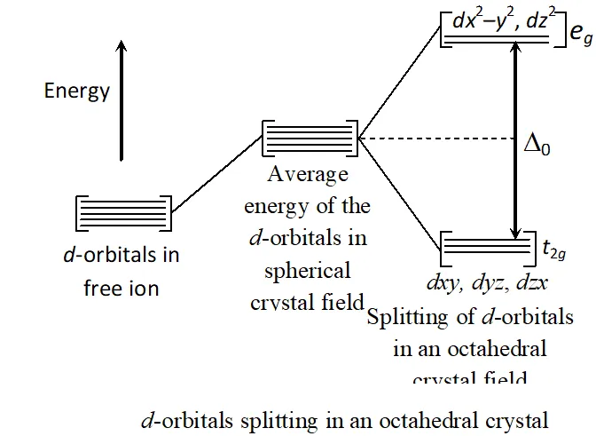 Q. Draw a figure to show splitting of degenerate $d$ -orbital in an octahedral crystal field. How does the magnitude of D_{o} decide the actual configuration of $d$ -orbitals in a complex entity?
