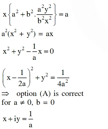 $\therefore \quad \operatorname{Im}\left(\frac{\mathrm{a}(\mathrm{x}+\mathrm{iy})+\mathrm{b}}{\mathrm{x}+\mathrm{iy}+1}\right)=\mathrm{y}$