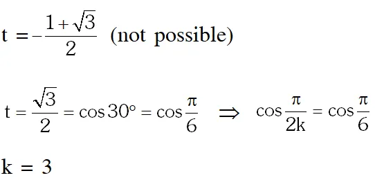 Q. Two parallel chords of a circle of radius 2 are at a distance $\sqrt{3}+1$ apart. If the chords subtend at the center, angles of $\frac{\pi}{k}$ and $\frac{2 \pi}{k}$ where $\mathrm{k}>0$, Glue of $[\mathrm{k}]$ is -