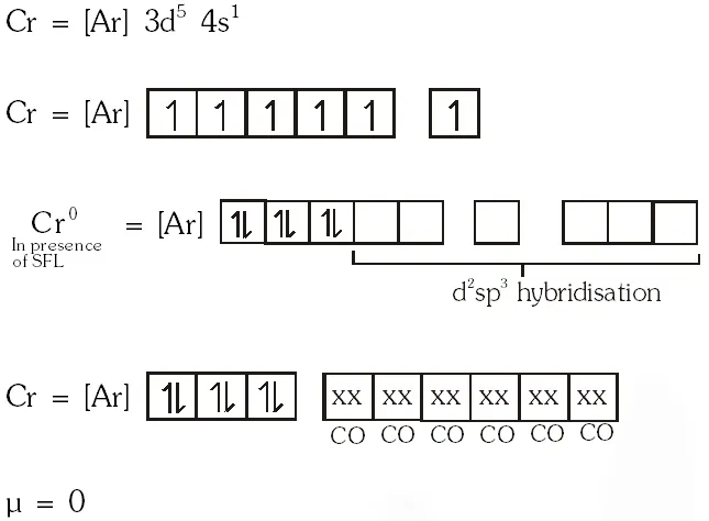 Q. The spin only magnetic moment value (in Bohr magneton units) of \mathrm{Cr}(\mathrm{CO})_{6} is
