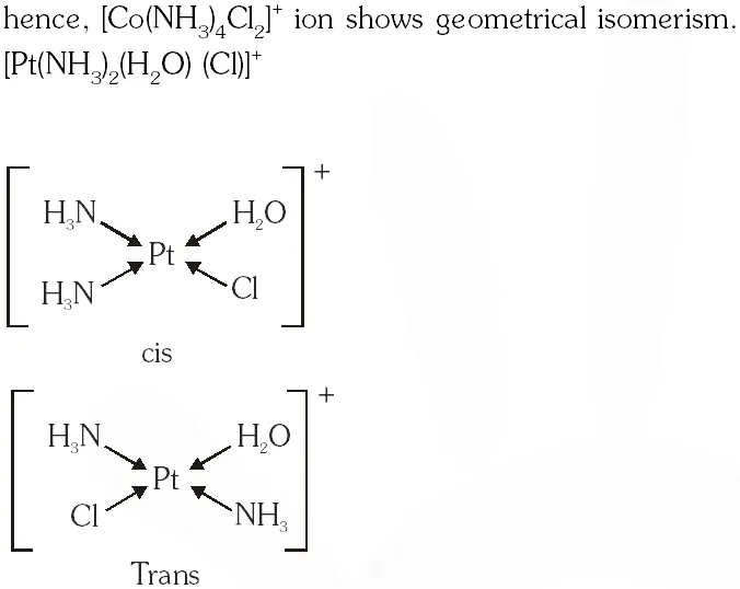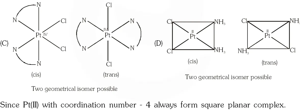 (3 unpaired electrons) isomerism (cis and trans) (does not show ionization isomer)