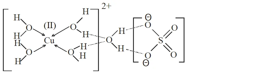 Q. The number of water molecule(s) directly bonded to the metal centre in $\mathrm{CuSO}_{4}$. $5 \mathrm{H}_{2} \mathrm{O}$ is.