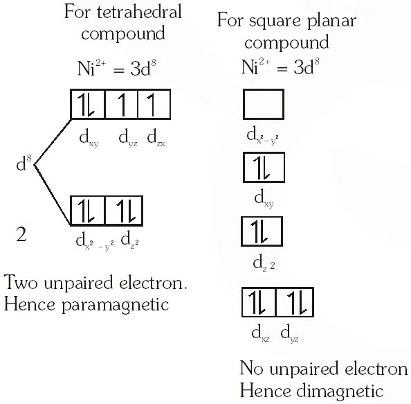 Q. $\mathrm{NiCl}_{2}\left\{\mathrm{P}\left(\mathrm{C}_{2} \mathrm{H}_{5}\right)_{2}\left(\mathrm{C}_{6} \mathrm{H}_{5}\right)\right\}_{2}$ exhibits temperature dependent magnetic behavior (paramagnetic/diamagnetic). The coordination geometries of Ni2+ in the paramagnetic and diamagnetic states are respectively :