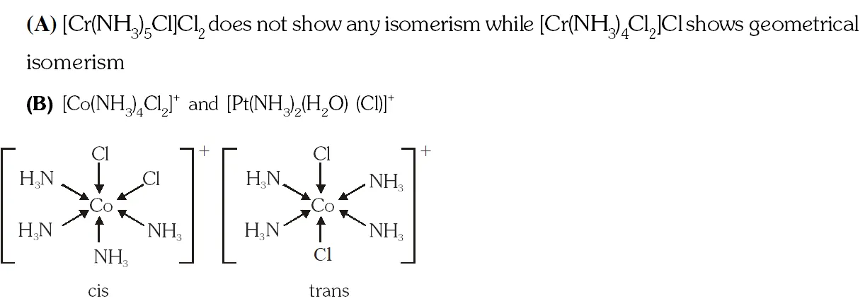 (A) $\left[\mathrm{Cr}\left(\mathrm{NH}_{3}\right)_{5} \mathrm{Cl}\right] \mathrm{Cl}_{2}$ and $\left[\mathrm{Cr}\left(\mathrm{NH}_{3}\right)_{4} \mathrm{Cl}_{2}\right] \mathrm{Cl}$