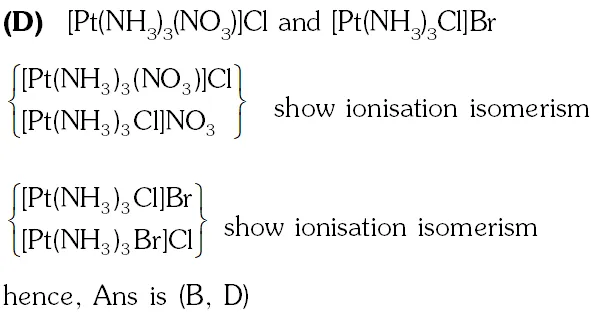 (D)$\left[\mathrm{Pt}\left(\mathrm{NH}_{3}\right)_{3}\left(\mathrm{NO}_{3}\right)\right] \mathrm{Cl}$ and $\left[\mathrm{Pt}\left(\mathrm{NH}_{3}\right)_{3} \mathrm{Cl}\right] \mathrm{Br}$