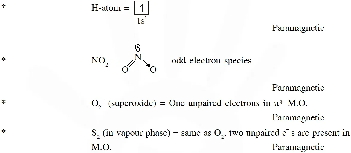 H atom, $\mathrm{NO}_{2}$ monomer, $\mathrm{O}_{2}^{-}$ (superoxide), dimeric sulphur in vapour phase,