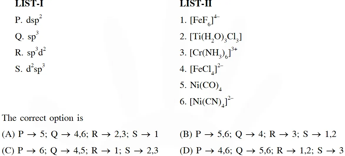 Q. Match each set of hybrid orbitals from LIST-I with complex (es) given in LIST-II.