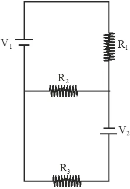 Q. Two ideal batteries of emf $\mathrm{V}_{1}$ and $\mathrm{V}_{2}$ and three resistances $\mathrm{R}_{1}, \mathrm{R}_{2}$ and $\mathrm{R}_{3}$ are connected as shown in the figure. The current in resistance $\mathrm{R}_{2}$ would be zero if :-