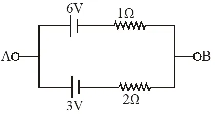 Q. Two batteries of different emfs and different internal resistances are connected as shown. The voltage across AB in volts is –