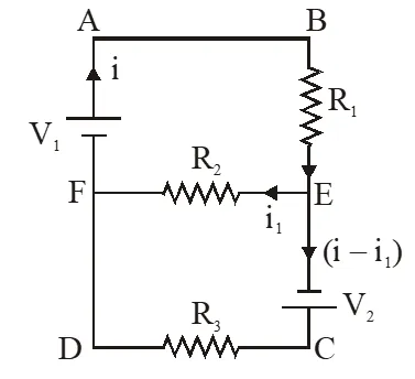 Q. Two ideal batteries of emf $\mathrm{V}_{1}$ and $\mathrm{V}_{2}$ and three resistances $\mathrm{R}_{1}, \mathrm{R}_{2}$ and $\mathrm{R}_{3}$ are connected as shown in the figure. The current in resistance $\mathrm{R}_{2}$ would be zero if :-