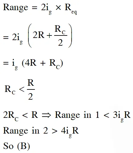 Q. Consider two identical galvanometers and two identical resistors with resistance R. If the internal resistance of the galvanometers $\mathrm{R}_{\mathrm{c}}<\mathrm{R} / 2$, which of the following statement(s) about any one of the galvanometers is(are) true (A) The maximum voltage range is obtained when all the components are connected in series (B) The maximum voltage range is obtained when the two resistors and one galvanometer are connected in series, and the second galvanometer is connected in parallel to the first galvanometer (C) The maximum current range is obtained when all the components are connected in parallel (D) The maximum current range is obtained when the two galvanometers are connected in series and the combination is connected in parallel with both the resistors. [JEE Advanced 2016]