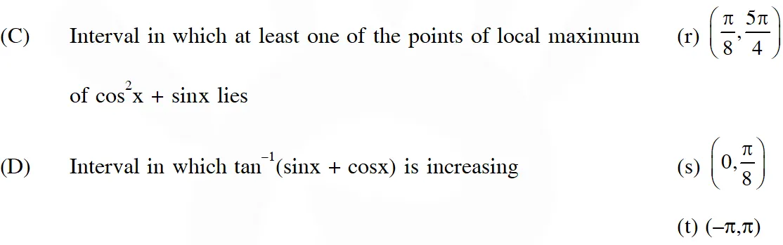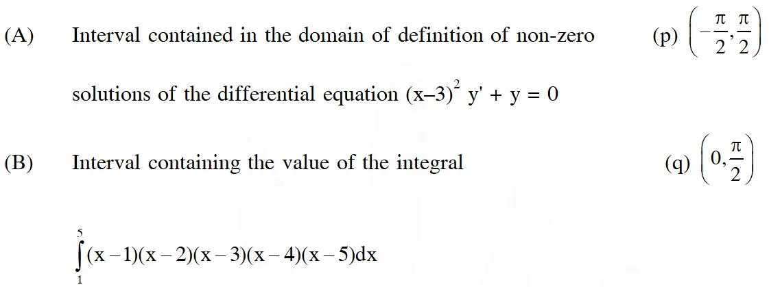Q. Match the statements/expressions in Column-I with the open intervals in Column-II.