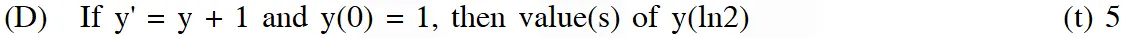 (B) Let $y^{\prime}(x)+y(x) g^{\prime}(x)=g(x) g^{\prime}(x), y(0)=0, x \in R,$ where $f^{\prime}(x)$ denotes $\frac{d f(x)}{d x}$ and $g(x)$ is a given non-constant differentiable function on $\mathrm{R}$ with $\mathrm{g}(0)=\mathrm{g}(2)=0 .$ Then the value of $\mathrm{y}(2)$ is