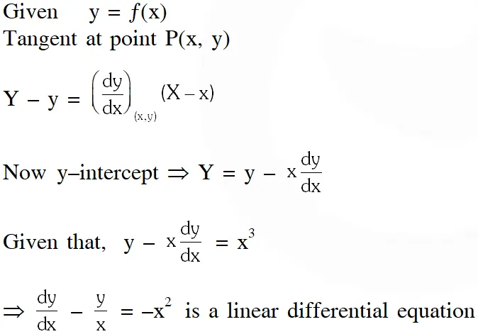 Given that, $\quad \mathrm{y}-\mathrm{x} \frac{\mathrm{d} y}{\mathrm{dx}}=\mathrm{x}^{3}$