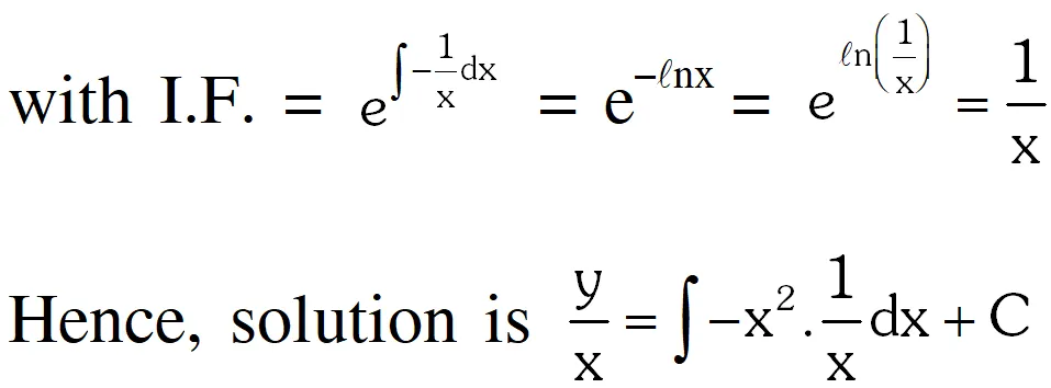 $\Rightarrow \frac{d y}{d x}-\frac{y}{x}=-x^{2}$ is a linear differential equation