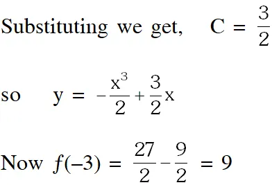 Q. Let f be a real valued differentiable function on R (the set of all real numbers) such that f(1) = 1. If the y-intercept of the tangent at any point P(x,y) on the curve y =f(x) is equal to the cube of the abscissa of P, then the value of f(–3) is equal to