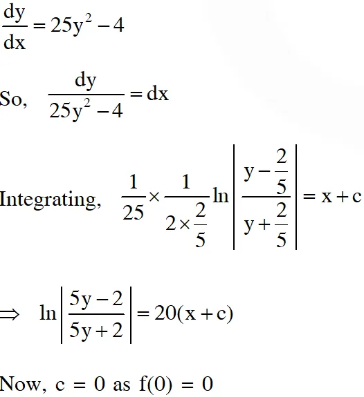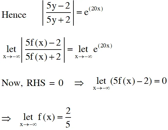 Q. Let $f: \square \rightarrow \square$ be a differentiable function with $f(0)=0 .$ If $\mathrm{y}=f(\mathrm{x})$ satisfies the differential equation $\frac{\mathrm{dy}}{\mathrm{dx}}=(2+5 \mathrm{y})(5 \mathrm{y}-2),$ then the value of $\lim _{x \rightarrow-\infty} f(\mathrm{x})$ is